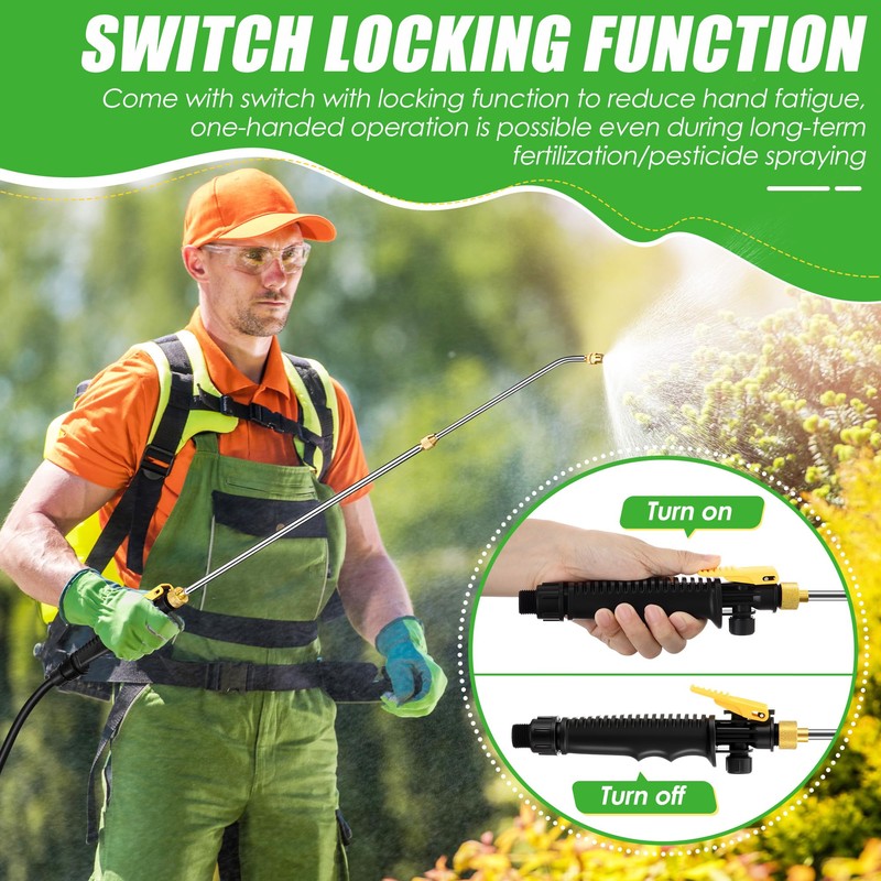 - Switch Locking Function: the handles of our 29" pump sprayer wand is equipped with switch with locking function to reduce hand fatigue; One handed operation is possible even during long term fertilization/pesticide spraying