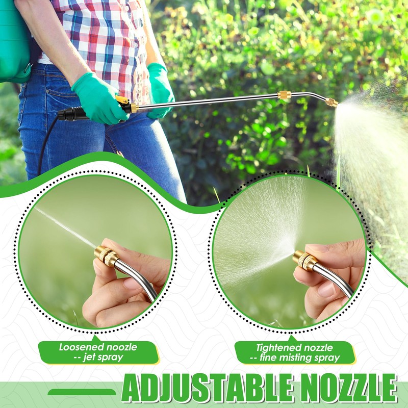 - Adjustable Pump Sprayer Wand: our sprayer wand can adjust the spray, before use, adjust the spray mode according to your needs, from fine mist to direct spray to achieve the best spraying effect; In addition, the wand is retractable, allowing you to easily spray hard to reach areas; The handle of the wrench comes with a filter, which can filter impurities in the water