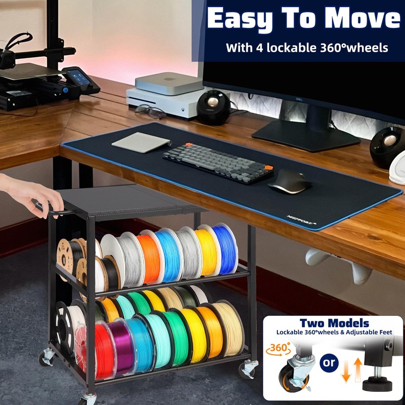- 【Locking Wheels & Anti-Vibration Feet】 Equipped with 360° rotating caster wheels, this 3D printer cart offers effortless mobility and stability. Adjustable Feet help reduce vibrations during printer operation, ensuring smooth, precise printing every time.