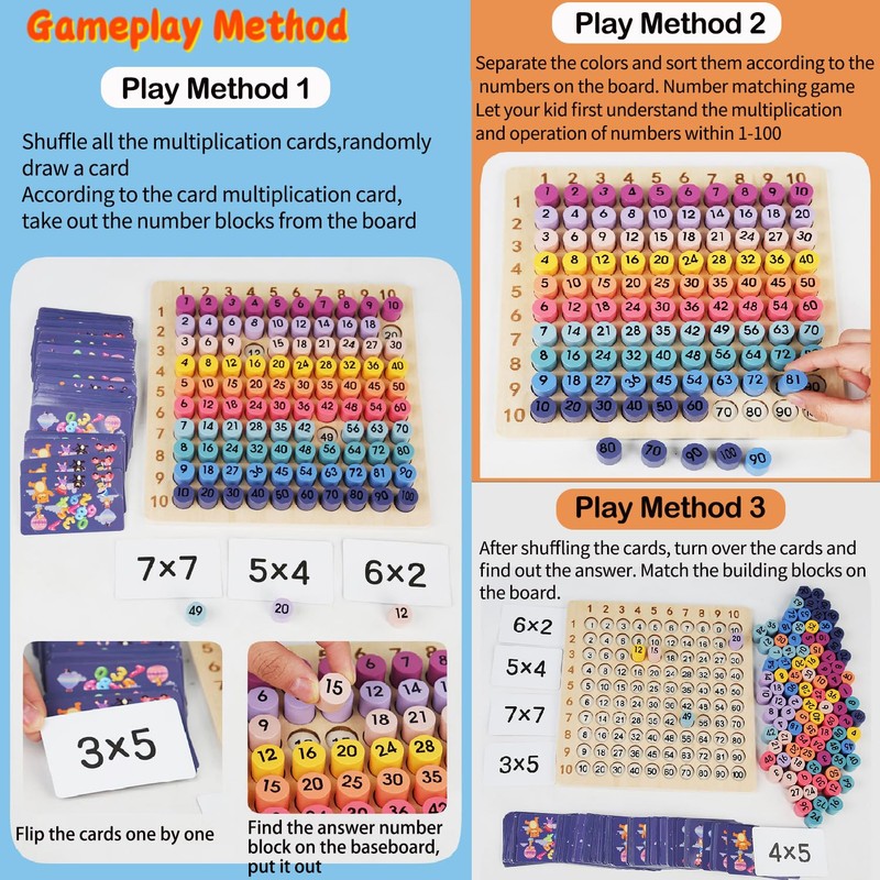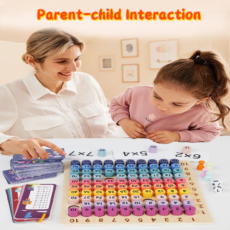 - Multi-purpose wooden multiplication educational toy: multiplication table for learning numbers, arithmetic, learning colours. It is a good tool for early education to promote children's spatial thinking and improve fine motor skills. Our wooden multiplication board game can be used as an intellectual maths learning toy, suitable for home, maths centre, classroom, primary school and more. and also Montessori maths toys for primary school grades 1, 2 and 3.