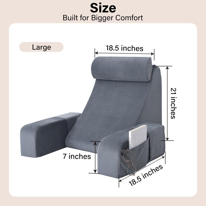 - Every Detail in Mind: Our back pillow for bed sitting up features cozy, soft fabric for maximum comfort, handy pockets on the armrests for convenient storage, a removable cover that's machine-washable for easy cleaning, and a top handle design for effortless portability, allowing you to move it around with ease. Enjoy comfort and convenience at its finest with our thoughtfully crafted reading pillow!