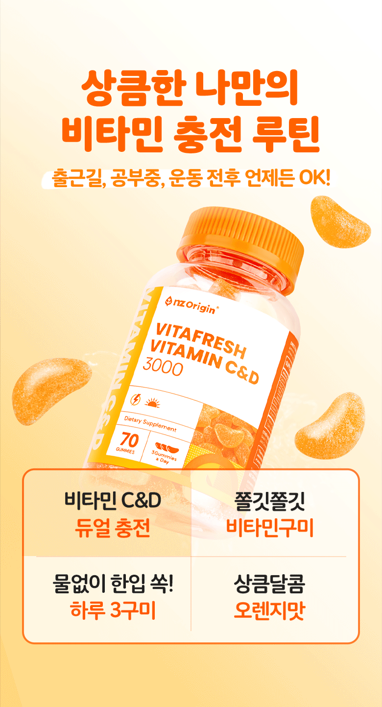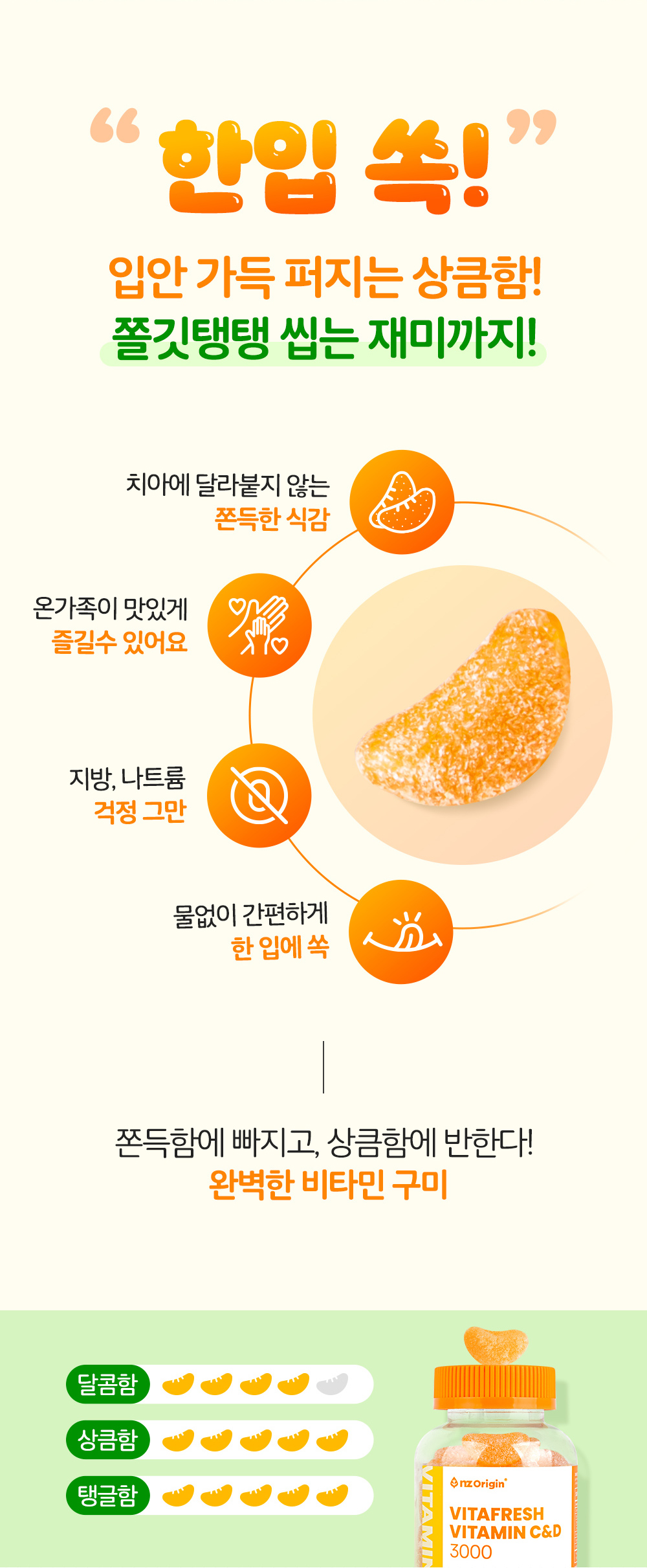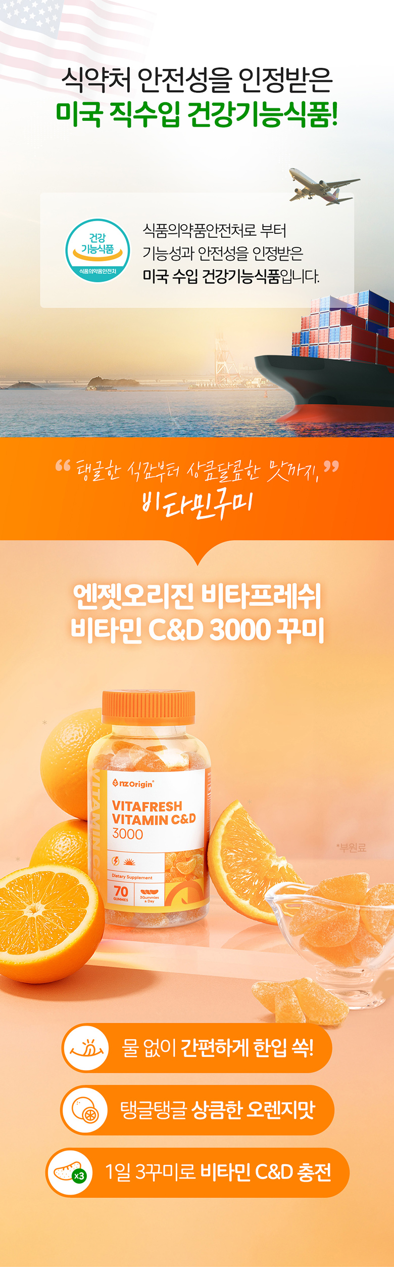 Enjet Origin Vita Fresh Tangerine Jelly Vitamin CD 3000 (70 gummies/3 gummies per day) 1 bottle / 엔젯오리진 비타프레쉬 귤젤리 비타민CD 3000(70구미1일 3구미) 1통