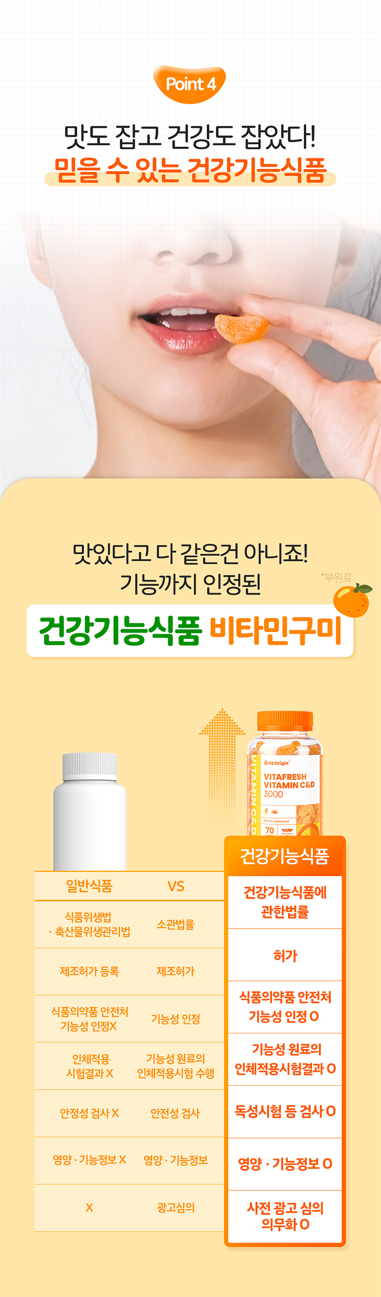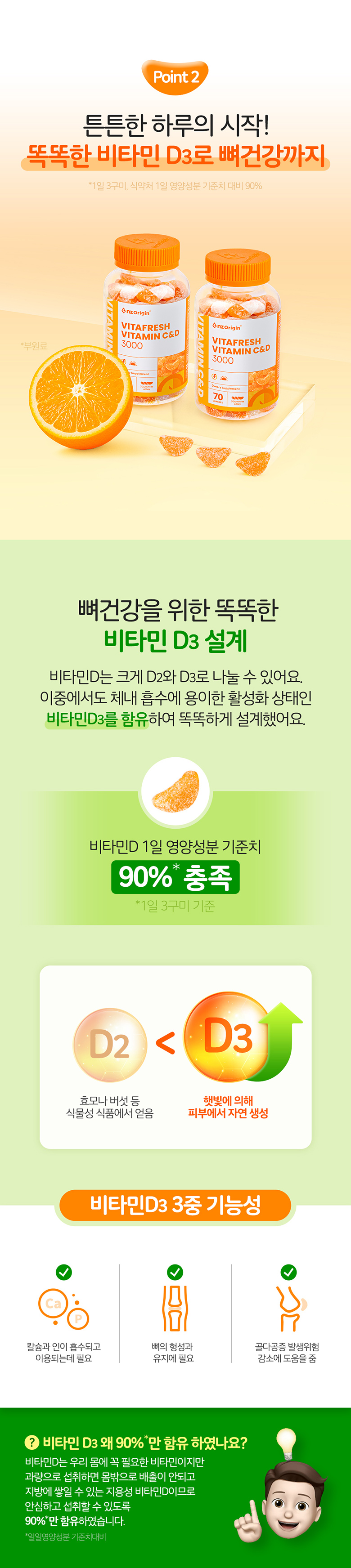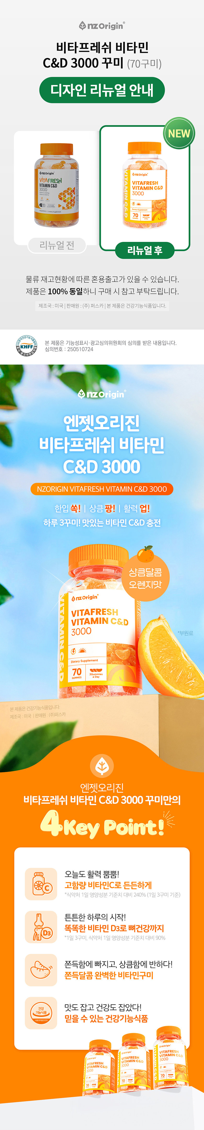 Enjet Origin Vita Fresh Tangerine Jelly Vitamin CD 3000 (70 gummies/3 gummies per day) 1 bottle / 엔젯오리진 비타프레쉬 귤젤리 비타민CD 3000(70구미1일 3구미) 1통