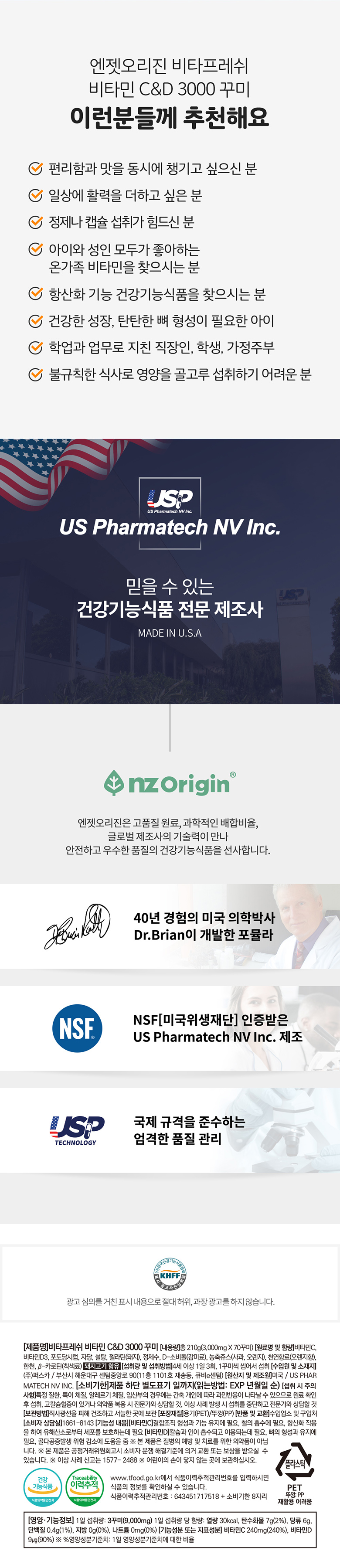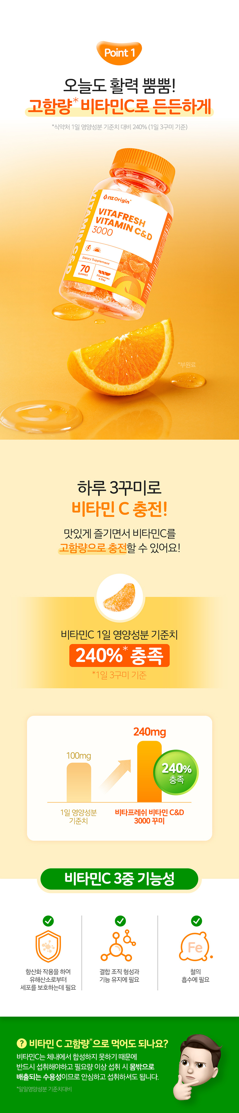 엔젯오리진 비타프레쉬 귤젤리 비타민CD 3000(70구미1일 3구미) 1통
