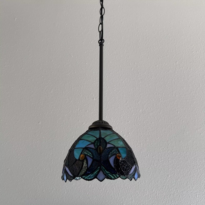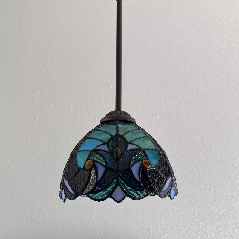 Enjoy Decor Lamps Tiffany Style Mini Hanging Lamp Plug In Green Brown Stained Glass 60”H*8”W*8"D