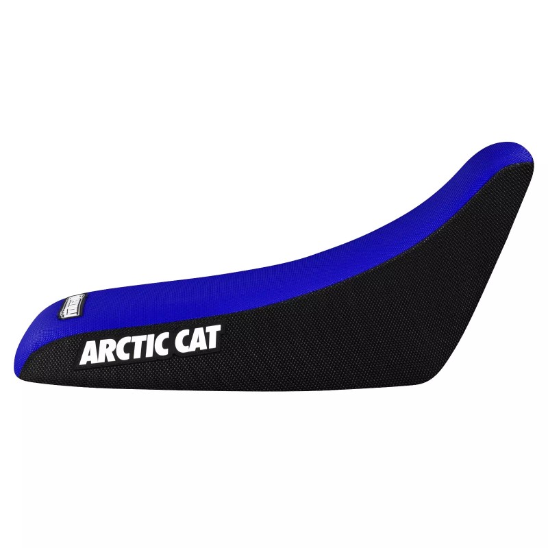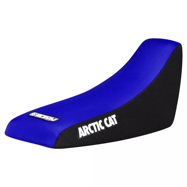 Enjoy Mfg Ribbed Gripper Seat cover BLACK sides - BLUE top Enjoy Mfg seat covers are an awesome up grade for your Quad Very easy to install. Each seat cover is made to fit perfectly. Enjoy Mfg uses the finest purpose built material for off road riding and racing. Fit: Arctic Cat 50 Years: 2004,2005 & Arctic cat 90 Years: 2002,2003,2004,2005 Enjoy Mfg gripper material Die Cut for an exact fit Double Stitched Seams Raised Gripper traction ribs Raised Pvc rubber Enjoy Mfg logos