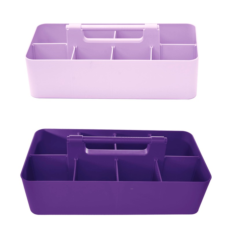 Enjoy Organizer Portable Caddy Organizer -2 Stackable Plastic Caddy with Handle | Desk, Makeup, Dorm Caddy, Classroom Art Organizers (Made In Usa) (Lavender/Royal Purple)