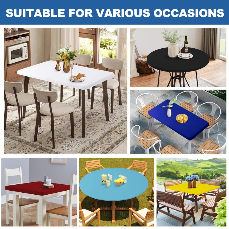 - Water-Repellent & Elastic Edge Design: This round stretch table clothes features an elastic edge design that securely grips the table, preventing shifting or sliding, and eliminating worries about being blown away. It ensures a perfect fit for your table. Made of stretch spandex, it can be easily stretched in all directions, offering both non-slip and windproof properties, providing stable support for your events.