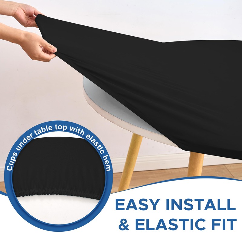 - Easy to put on & Take off: Featuring a four-way stretch and a reusable design, our spandex fitted tablecloths are simple and quick to install. Just slip the tablecloth over the table and adjust the topper, which can easily be done by one person. Additionally, removing it is extremely convenient, saving time and effort.