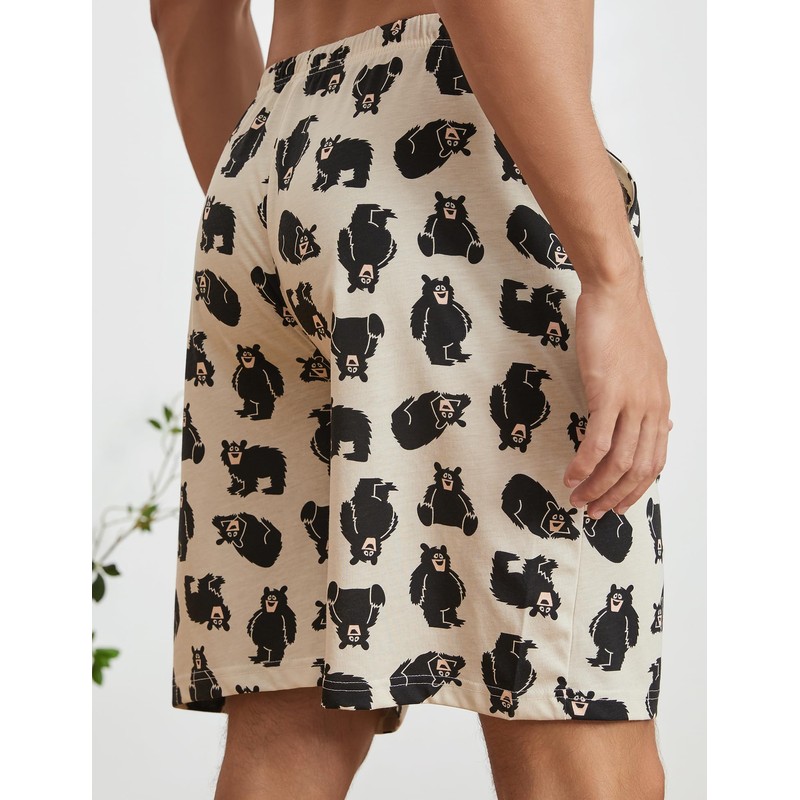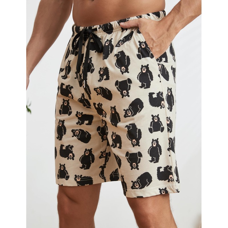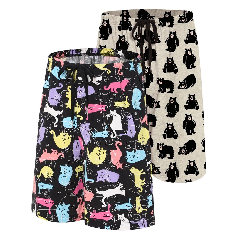 ENJOYNIGHT 2 Pack Mens Pajama Shorts Cotton Sleep Bottoms with Pockets & Drawstring(Medium,Bear+Cat)