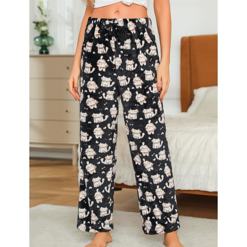 ENJOYNIGHT Women Fleece Pajama Pant Fluffy Sleep Bottoms Plush Lounge Sleep Pants(Medium, Cat)
