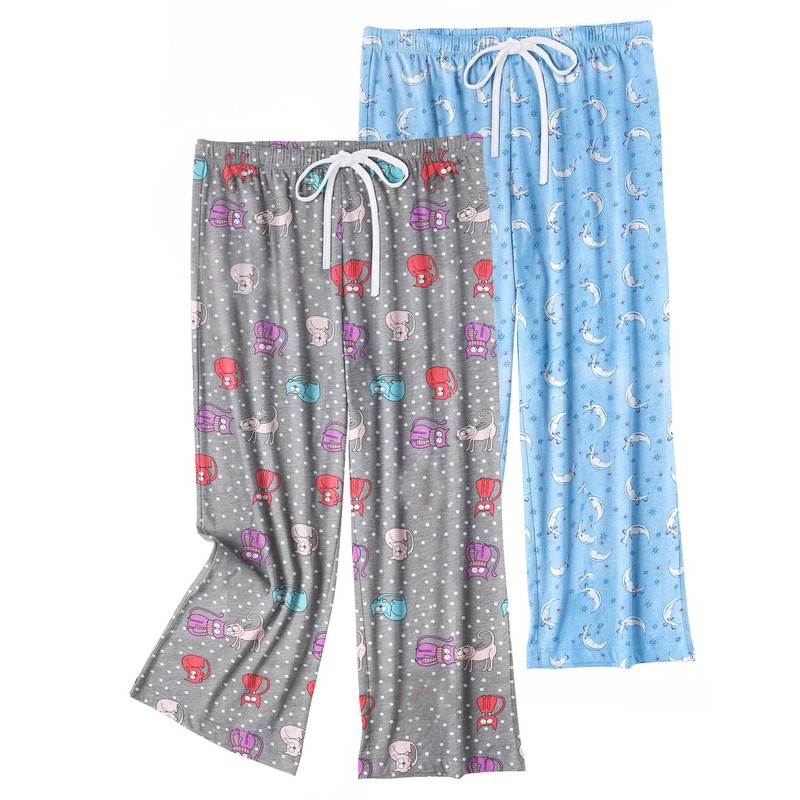ENJOYNIGHT Women's Capri Pajama Pants Cotton Lounge Bottoms Print Sleep Pants with Drawstring (Medium,Cat+Moon)