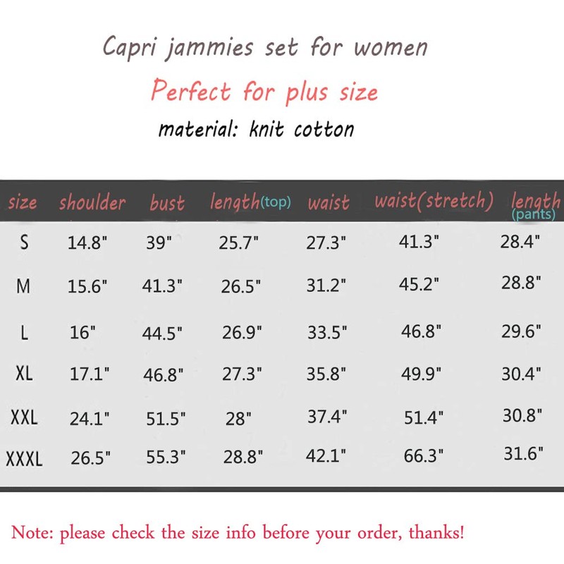 - Soft Material: Made of 60% cotton and 40% polyester, truly comfortable and lightweight. Women's pajama capri pants set is a good choice for home enjoyment, reading, sports and cooking