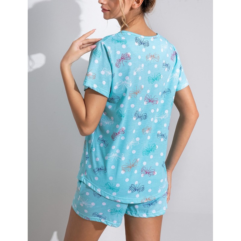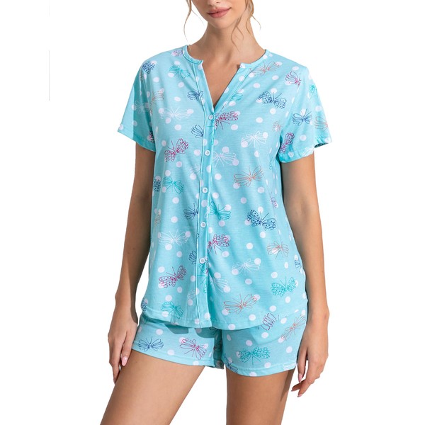 ENJOYNIGHT Womens Pajama Set Button Down Tee and Shorts Sleepwear Pjs with Pockets (XX-Large,Butterfly)