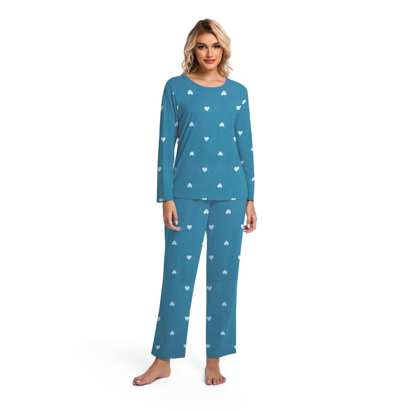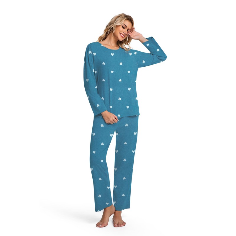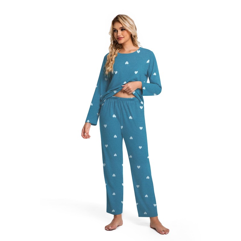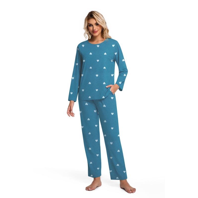 ENJOYNIGHT Womens Pajama Set Cotton Long Sleeve Pjs Two Piece Sleepwear with Pockets (Medium, Blue Heart)