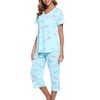 - Design Features: Womens tow-piece pajamas set, Comfortable elastic waist capri pants, matching with V-neck short sleeve shirt (Part Round Neck),Beautiful prints and cute animal prints make these nightwear set cute and stylish.It is the perfect choice for home leisure.