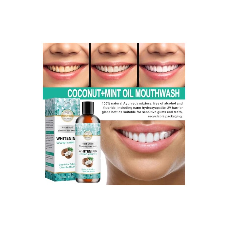 Enjuague bucal con aceite de coco y sabor a menta, previene el mal aliento, ayuda a blanquear los dientes, cuidado bucal natural, enjuague bucal con