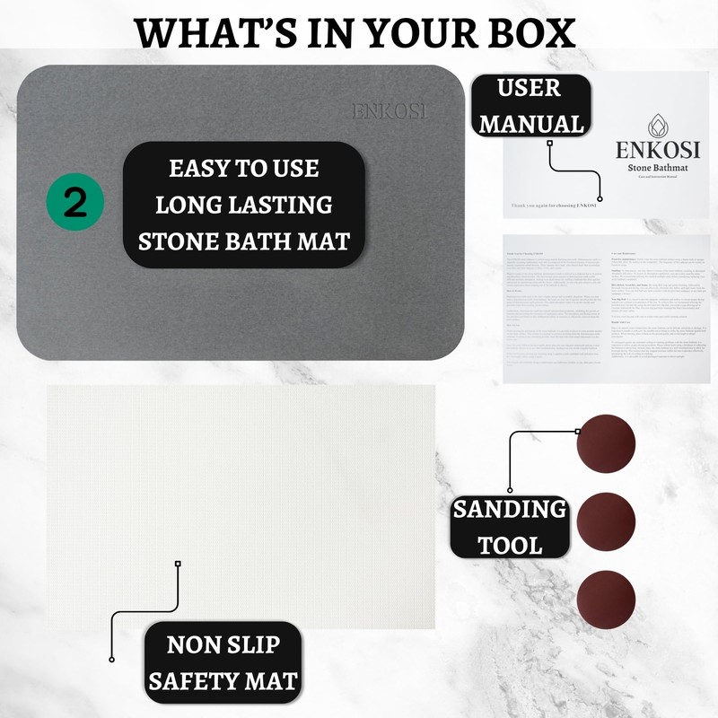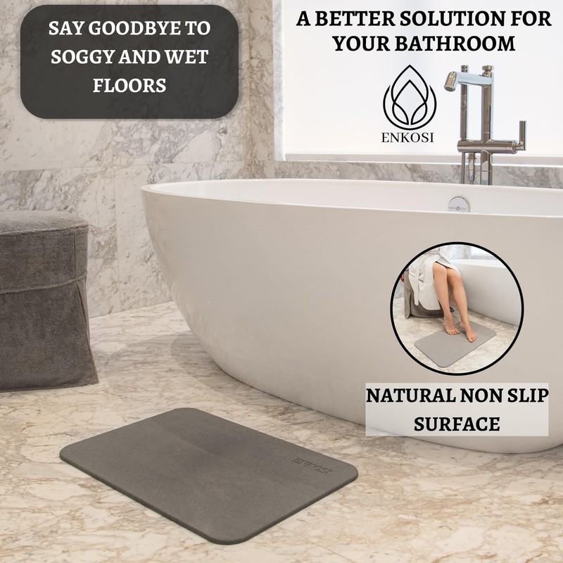 - ENKOSI BATH MATS we take pride in offering a sustainable solution with our Stone Bath Mat. Unlike traditional bath mats that need frequent washing and replacement, our sustainable, earth-friendly mat is designed to last longer, minimizing waste. By choosing our Stone Bath Mat, you make a sustainable choice that benefits you and the planet.