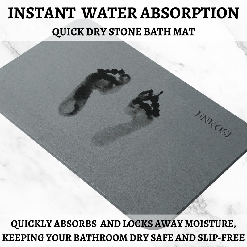- STONE BATH MAT our diatomaceous earth stone bath mat swiftly evaporates water from its surface, keeping your bathroom clean and dry. With its outstanding absorbency, this stone bath mat effectively soaks up water from your feet preventing slips and falls