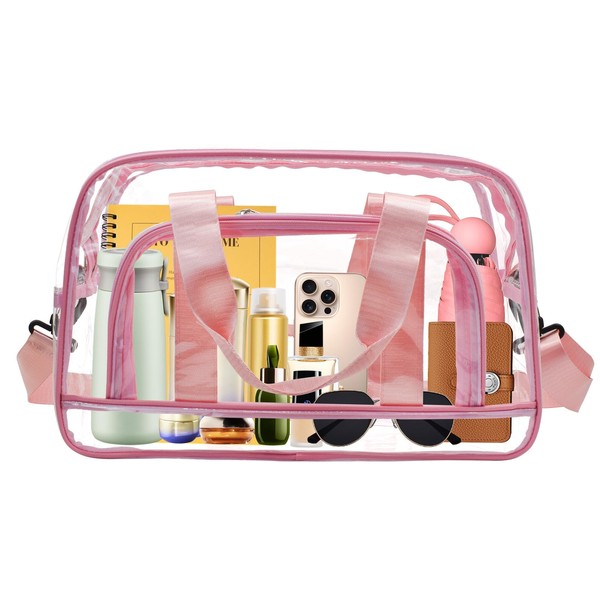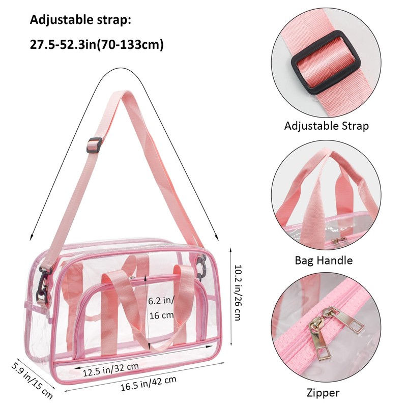 [Enkrio] クリアバッグ ビニールバッグ プール ボストンバッグ 透明 ショルダーバッグ PVC 防水 斜め掛け 手提げ 大きめ 大容量 ポケット付き 水泳 (ピンク)