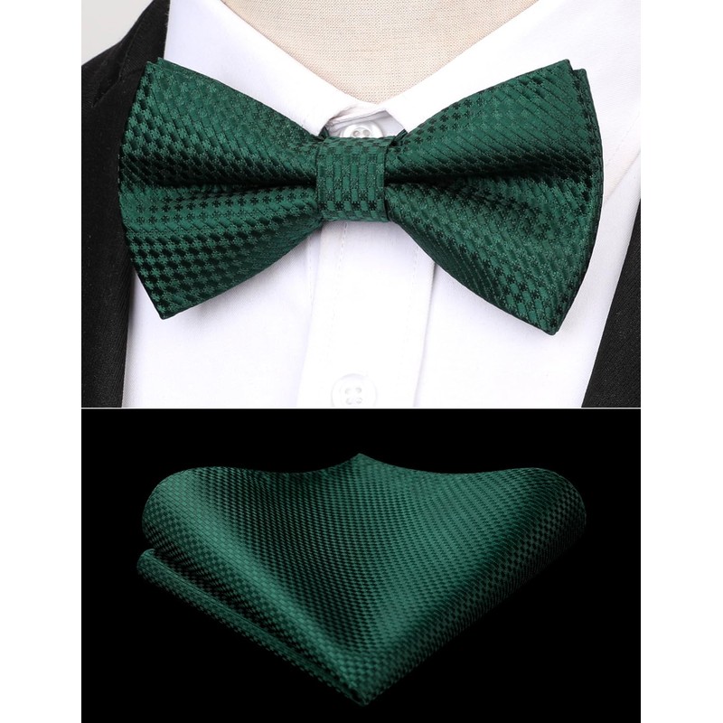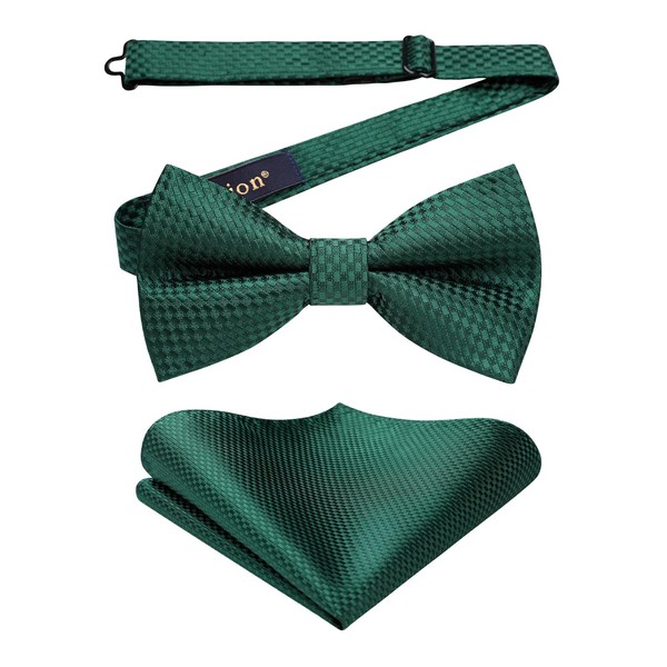 Enlision Forest Green Bow Tie for Men Pre-tied Bow Ties and Handkerchief Formal Elegant Bowtie and Pocket Square Set Wedding Party Dicky Bowties