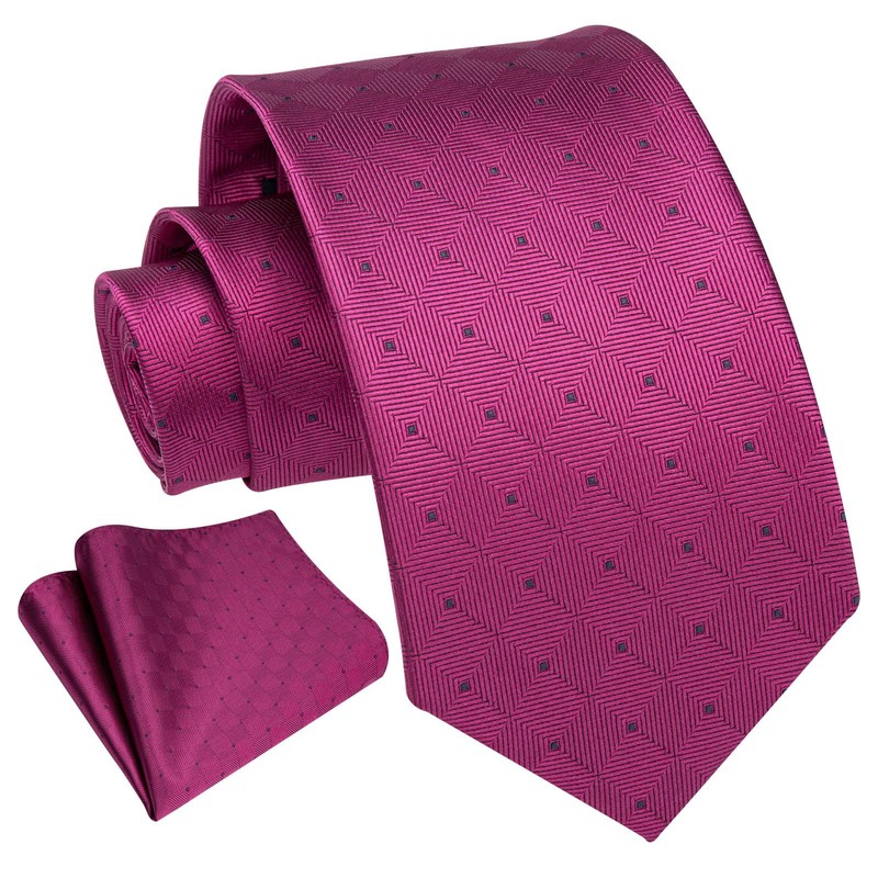 Enlision Hot Pink Ties for Men Wedding Plaid Tie Pocket Square Formal Business Necktie & Handkerchief Set