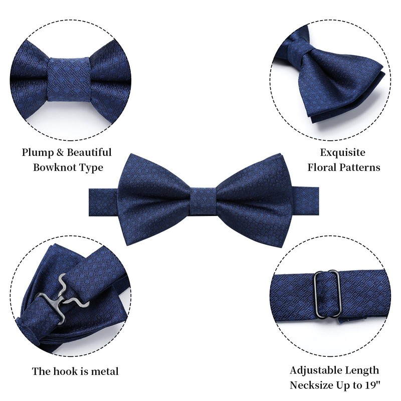 - Occasions - This navy blue bow tie and pocket square set would look great in any occasions, like Daily Dress, Wedding Bowtie, Prom, Business, Engagement, Carnival, Cocktail Party, Show, Dinner, Graduation, etc.