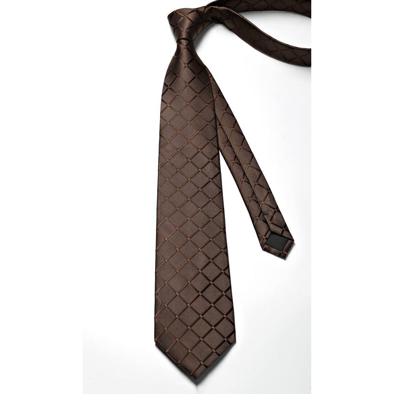 Enlision Men's Ties and Pocket Square Tie Clip Set Paisley Checked Tie Handkerchief Tie Pin for Men Business Wedding Tie Sets, A1-Brown