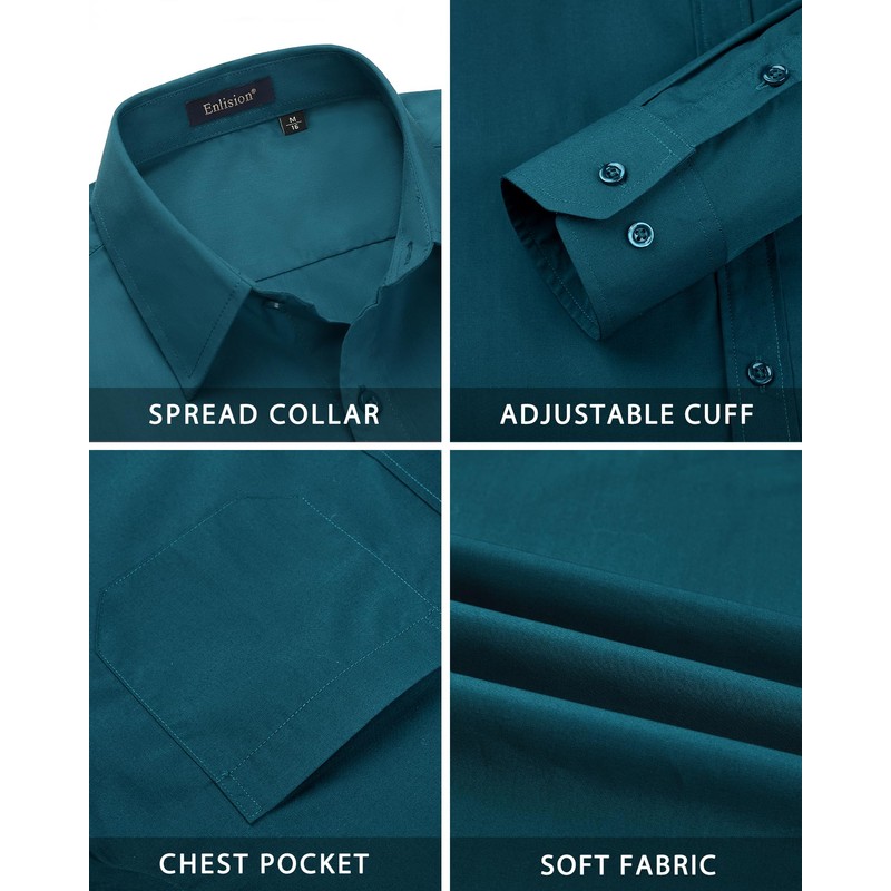 Enlision Mens Teal Dress Shirts Formal Long Sleeve Button Down Shirts for Men and Tie Combo for Men Collar Business Casual Clothes for Wedding Party