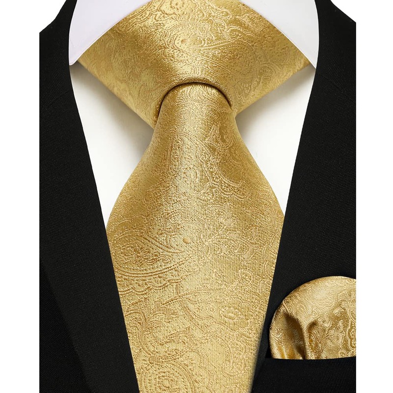 Enlision Suit Vest for Men Gold Paisley Dress Vest and Tie Set Formal 4pc Silk Dress Waistcoat Necktie and Pocket Square Set Wedding Party Business Tuxedo