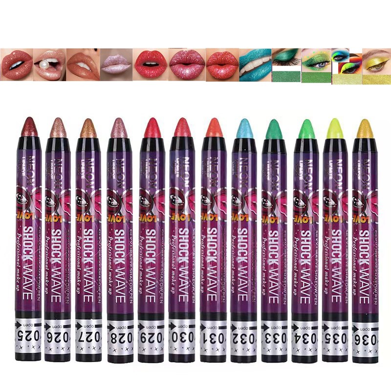 EnMart 12 Colours Eyeshadow Stick, 2-in-1 Glitter Eyeshadow Stick, Smudge-Resistant, Matte Mother of Pearl, Highly Saturated Eyeshadow, Eyeliner Pen, Creamy Eyeshadow Pencil, Crayon Women Makeup