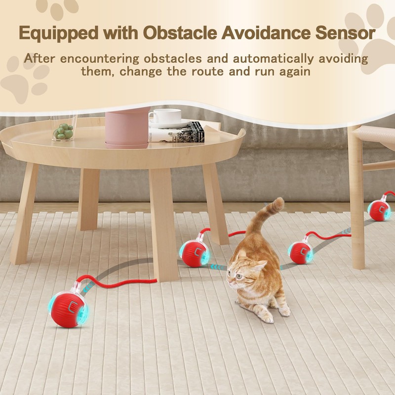 - 【Smart Obstacle Avoidance】No more stuck toys! The automatic moving cat ball with built-in intelligent motion sensors, the active rolling ball for cat dogs navigates around obstacles, changing direction if needed, ensuring continuous fun without interruption