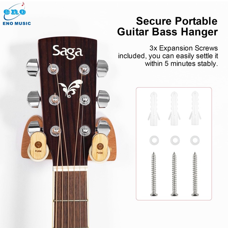 - 🎸【Secure Portable Guitar Bass Hanger】: 3 x Expansion Screws included, you can easily settle it within 5 minutes stably.