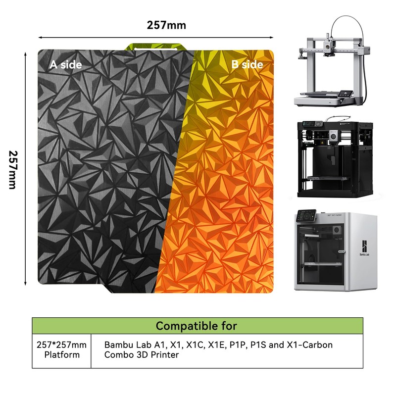 - 【Perfectly Compatible】Bed sheet dimensions: 257X257mm, compatible for Bambu Lab A1, X1, X1C, X1E, P1P, P1S and X1-Carbon combo 3d printer