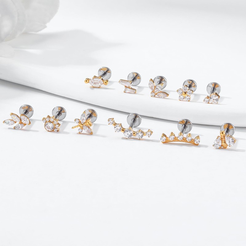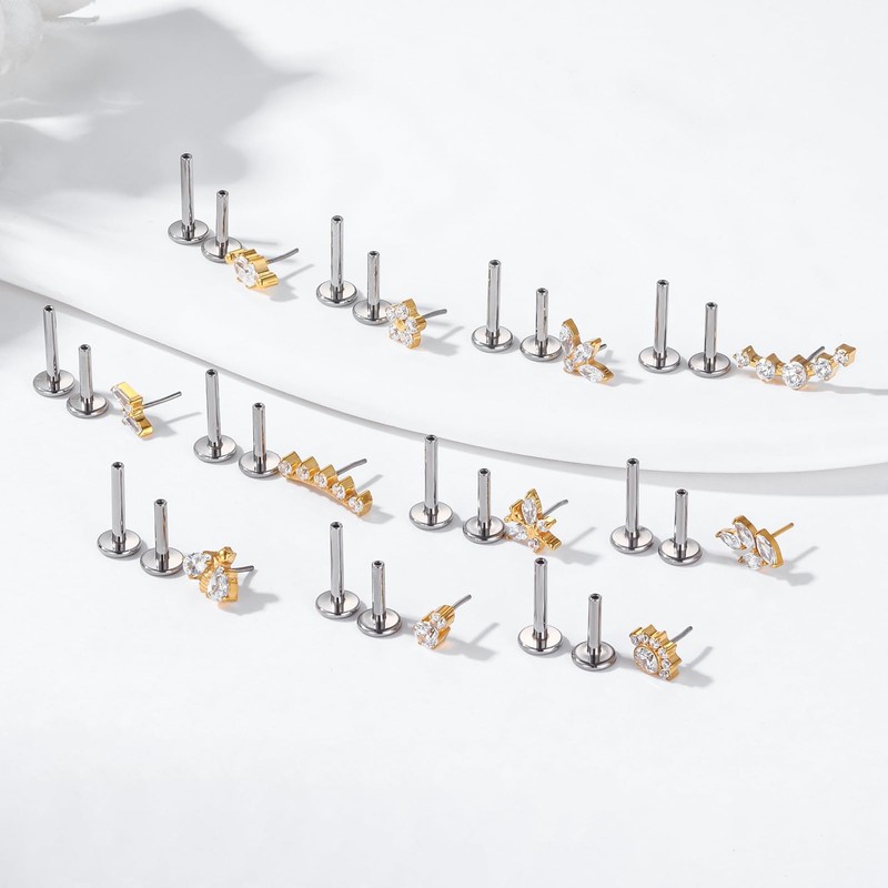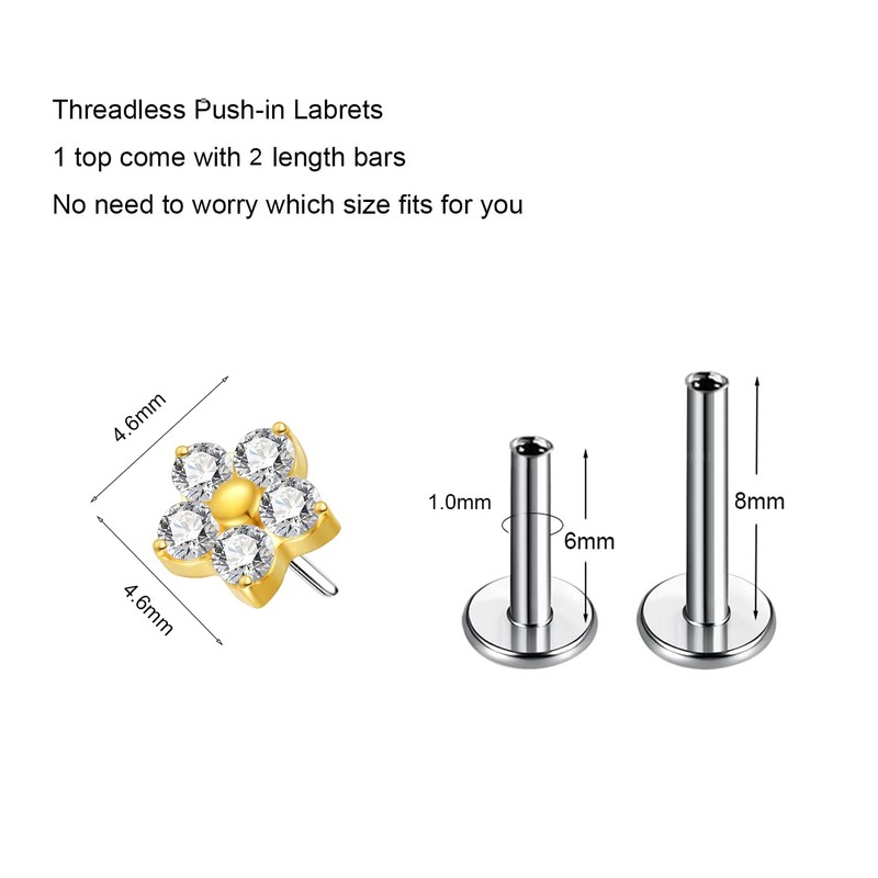 - Material: Titanium Threadless Labret Studs made by implant grade titanium(SGS certified) and AAAAA+ Cubic Zircon, Hypoallergenic and suitable for healing piercings.