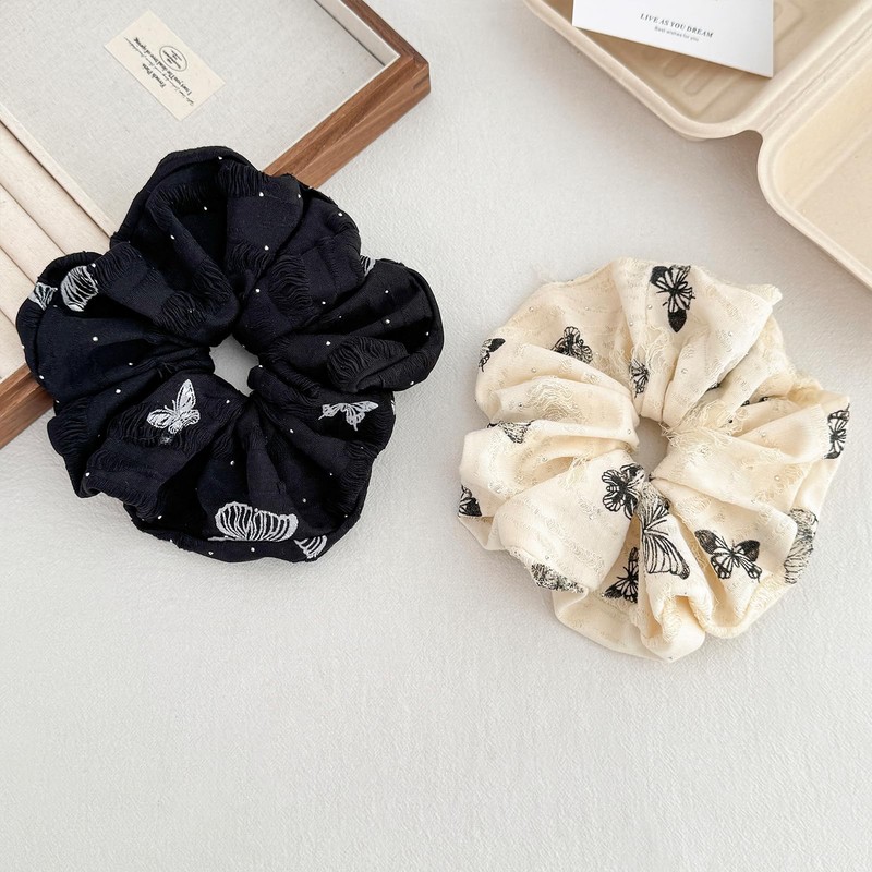 - Butterfly Pattern Design: 2PCS french oversized hair scrunchies with 6.5". Unique shape, not only butterfly pattern and bright small rhinestones, scattered thread is also one of the fashion vintage design. The big size hair ties are comfortable to wear