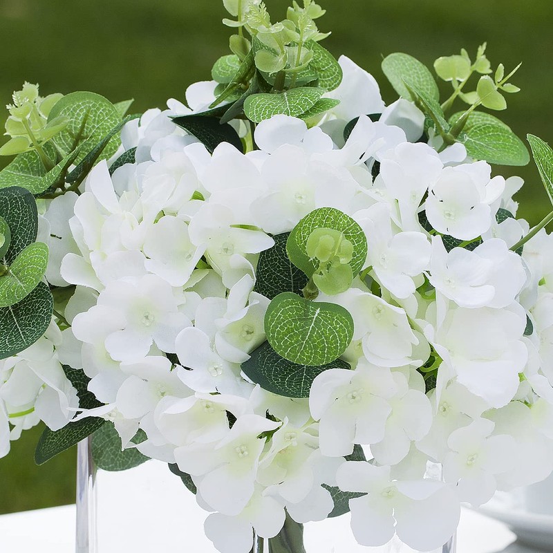 - 【Flower Type】 Mixed Artificial Silk Hydrangea Flowers and Eucalyptus Leaves in Cream White Color