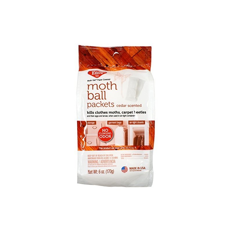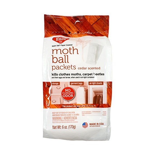 - ENOZ MOTH BALL PACKETS: These cedar scented moth ball packets kill clothes moths & carpet beetles & their eggs & larvae. Each packet is individually wrapped & ideal for flat storage areas, like drawers, blanket chests, sweater boxes & closet shelves.