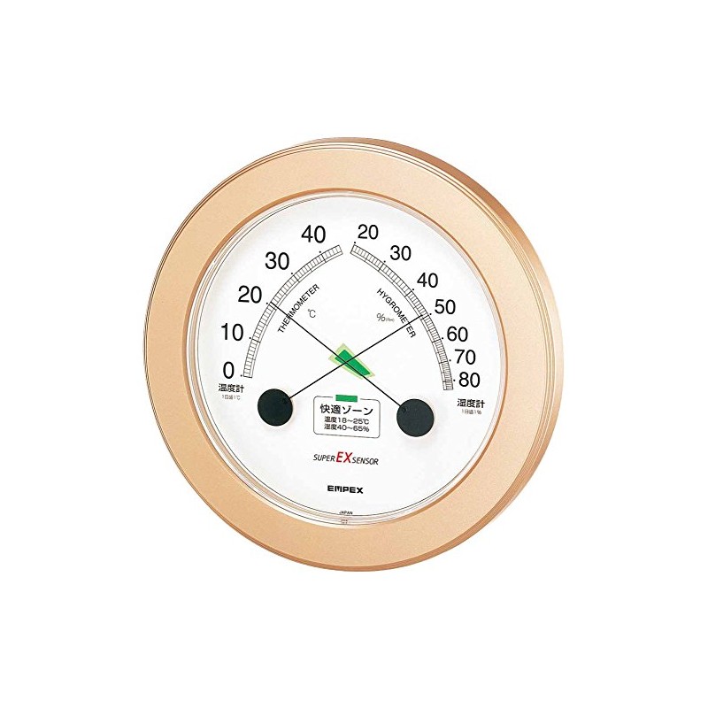 enpekkusu Weather Meter, Temperature and Humidity Meter, Super EX High Quality Hygrometer Wall Made in Japan Champagne Gold Ex – 2738