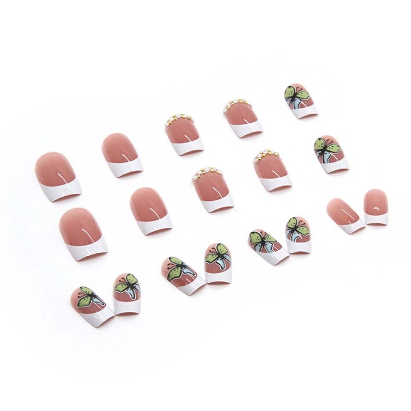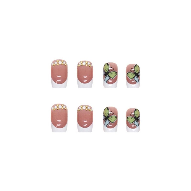 Enppode Medium Fake Nails French Tip Press on Nails White Acrylic Nails Square Nails for Women with Butterfly Design
