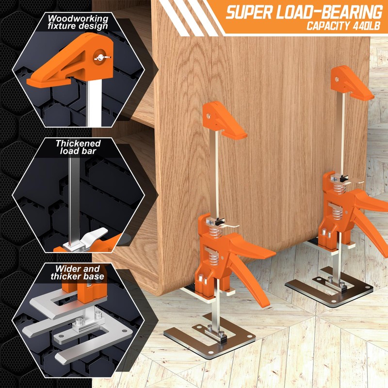 - [WIDE RANGE OF APPLICATIONS]: A multitasking wonder! This versatile hand lifting tool transforms into woodworking clamps with telescopic capabilities, perfectly suited for woodworking projects and construction. From door lifts, wood panel manipulations, cabinet adjustments, to drywall and wall tile height alterations, it masters diverse lifting needs with ease and precision.