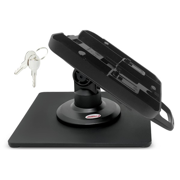 ENS Tailwind Ingenico ISC 250 3" Latch and Key Lock Compact Pole Mount Terminal Stand with Square Freestanding Mobility Base Plate, Black