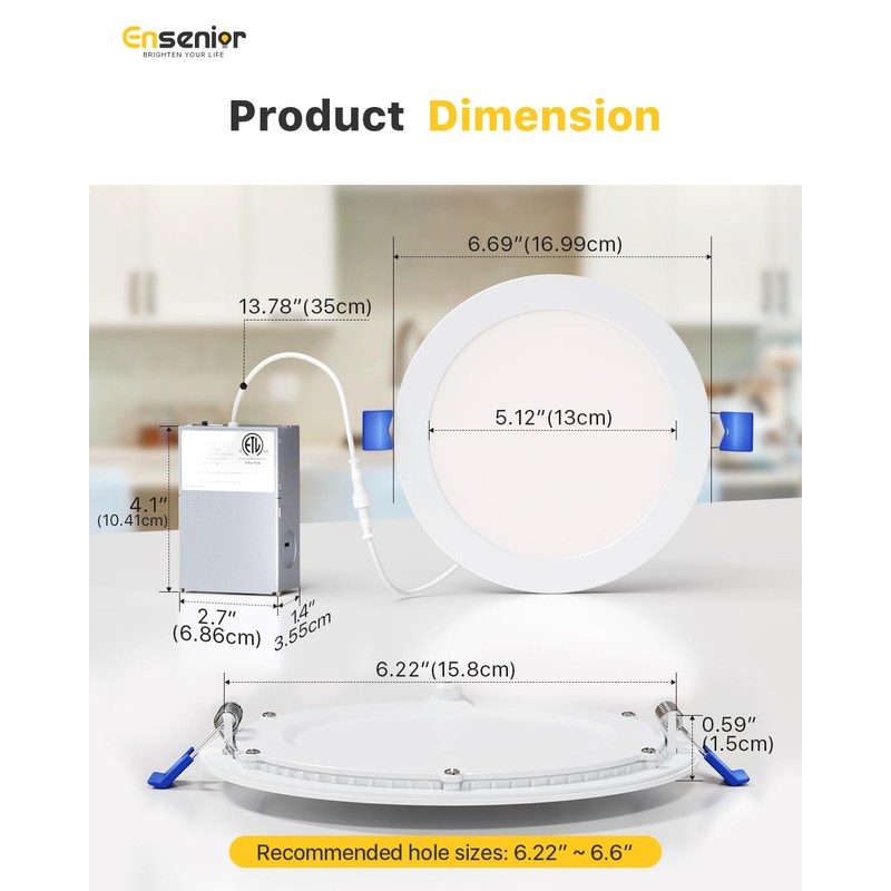- 💡【Highest Industry Standards】The whole Ensenior's recessed lighting is certified by ETL & Energy Star of a high standard. Different from the wire nut of other brands. Our high-quality wire terminal has passed UL certification. Give you the most top security.
