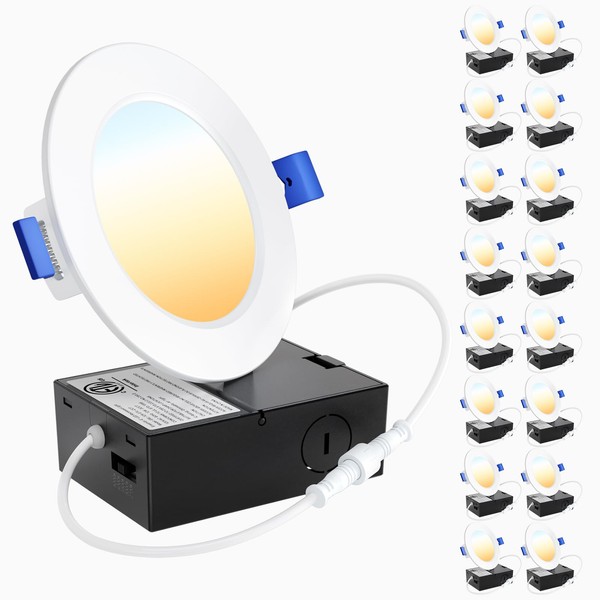 Ensenior 16 Pack 4 Inch Ultra-Thin LED Recessed Wafer Light with Junction Box, 2700K/3000K/3500K/4000K/5000K - 5CCT Selectable, 7.9W Eqv 65W, Dimmable Downlight, 650LM High Brightness - FCC&ETL