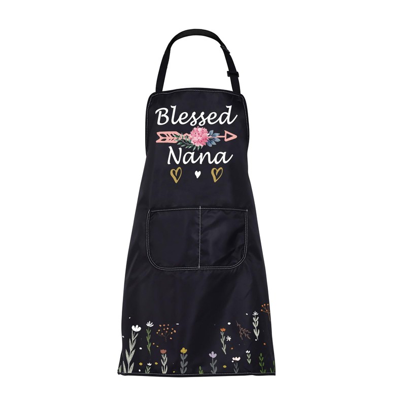 - MATERIAL This Blessed Nana Apron is made of high-quality waterproof composite material, which is resistant to dirt, water stains, and oil. Durable soft and breathable fabric provides you with more comfort and satisfaction.