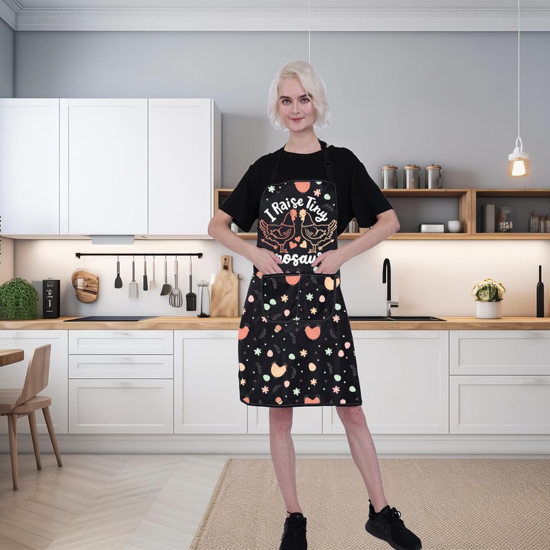 ENSIANTH Chicken Aprons for Women with Pockets I Raise Tiny Dinosaurs Chicken Cooking Kitchen Chef BBQ Apron with Pockets (24109 Chicken A)