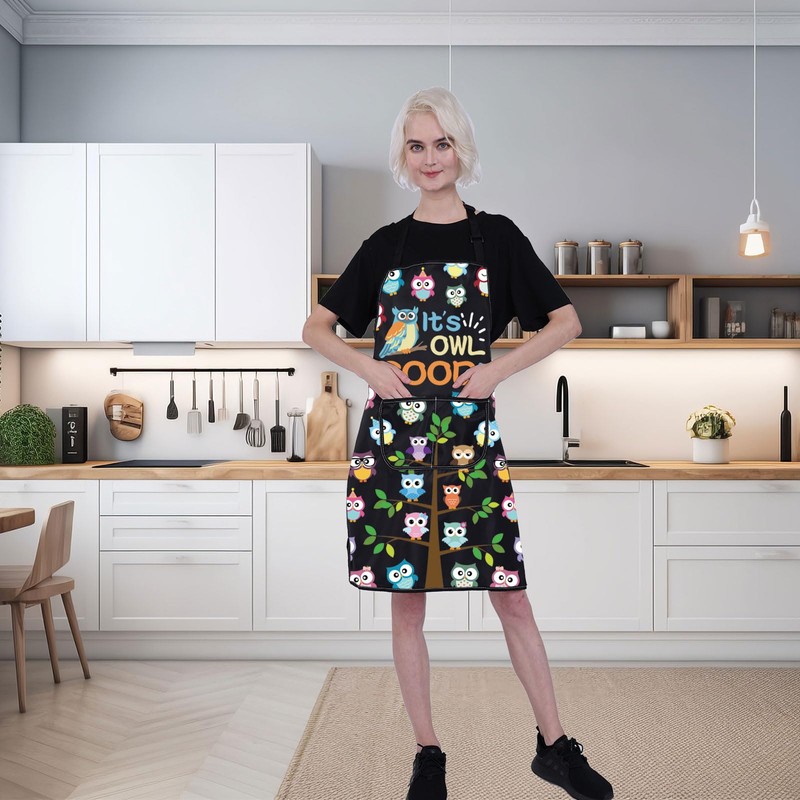 ENSIANTH Owl Aprons for Women with Pockets Owl Gifts for Owl Lovers It’s Owl Good Cute Owl Cooking Kitchen Chef BBQ Apron (2519 Owl Aprons)