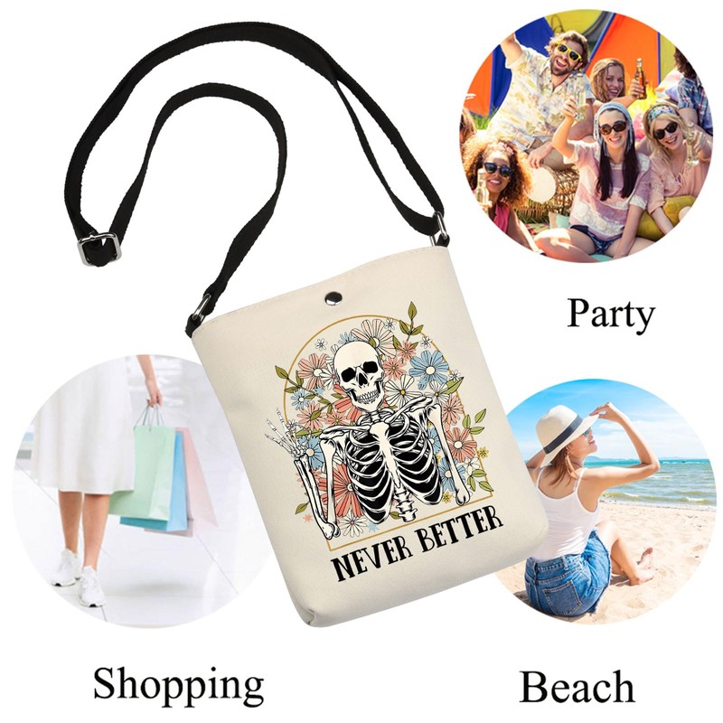- IDEAL GIFT: Skull crossbody pocketbook, skull trendy travel crossbody handbags, skeleton lightweight purse. It is suitable for different scenes or festivals, such as birthdays, Thanksgiving, Christmas, New Year, Valentine's Day, Mother's Day, Easter, Halloween, etc.