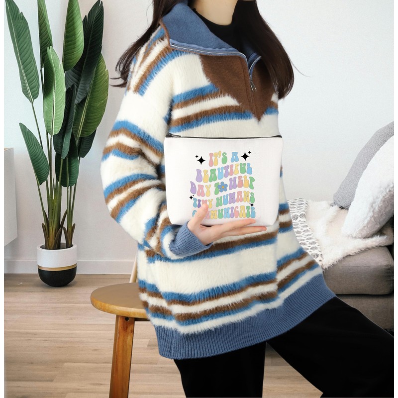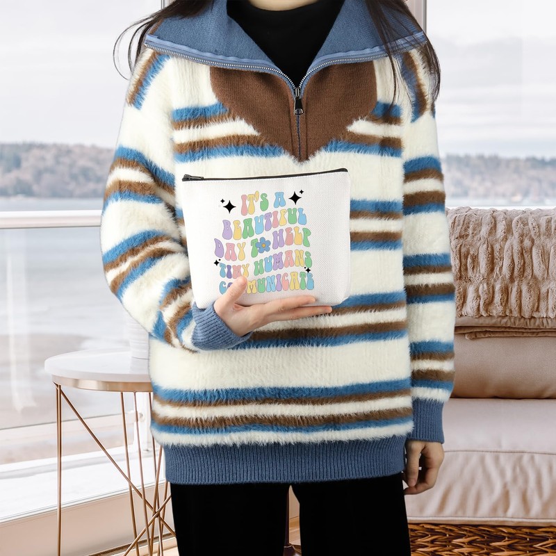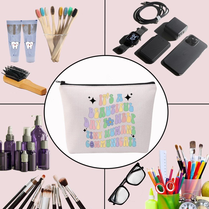 ENSIANTH Speech Therapy Gift Makeup Bag Speech Pathologist Teacher Appreciation Gift AAC SLP Gift Tiny Humans Communicate Gift (tiny MU)
