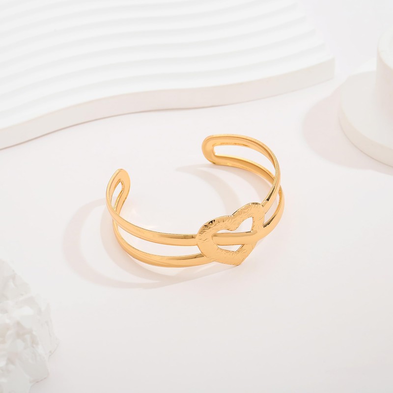 - Stylish Heart Cuff Bracelets: This double-layer heart cuff bracelet features a hammered gold heart in the center, offering a chic and modern look with a touch of elegance. Perfect for both casual and formal occasions, this gold bangle bracelet will elevate your outfit effortlessly.